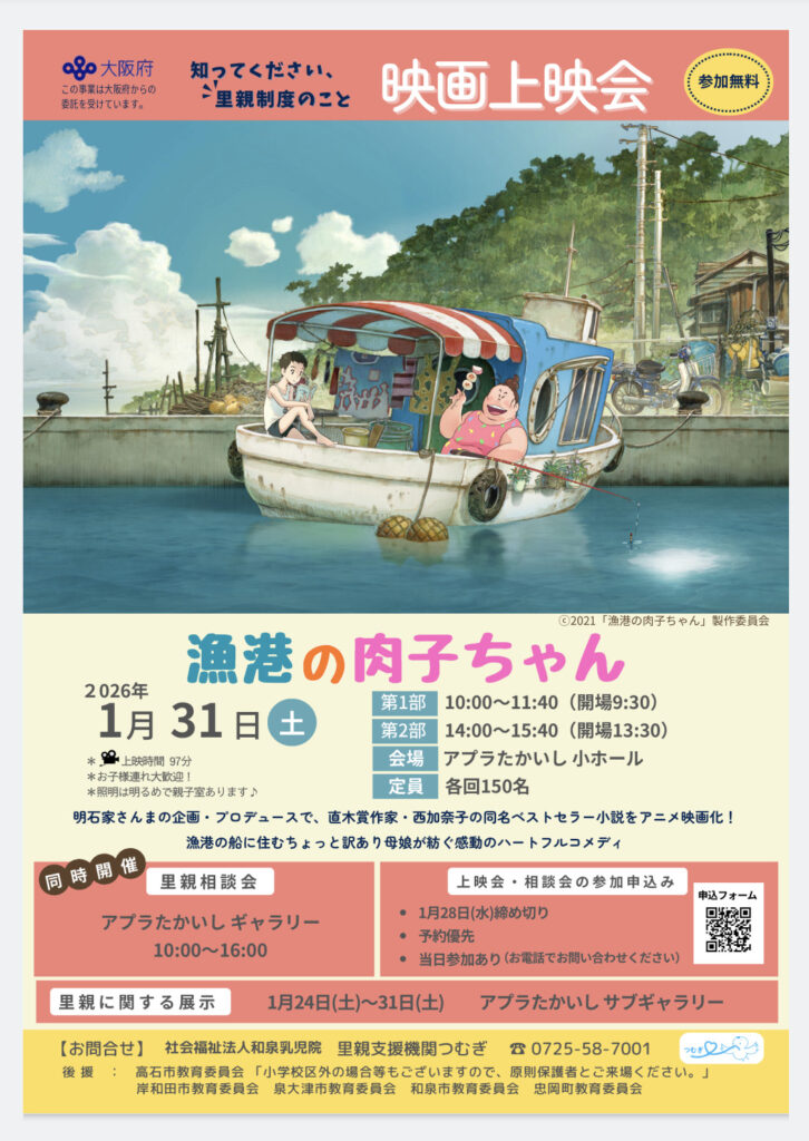 里親制度を知っていただくために、下記の通り無料映画上映会を行います。お席の方はまだ少し空きがございますので、ぜひお申し込みください。